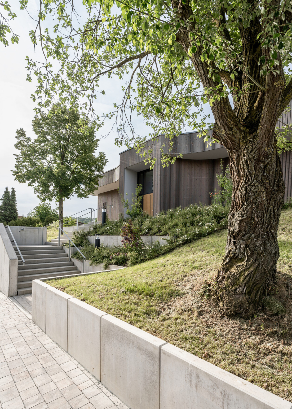 Die weitgehende Erhaltung der umliegenden Grünordnung ringsum das bestehende Gebäude liegt im großen Interesse der Bauherrschaft als auch der planenden Architekten. Daher wurde bei der Planung darauf geachtet, dass möglichst wenig bestehende Bäume gefällt werden müssen.